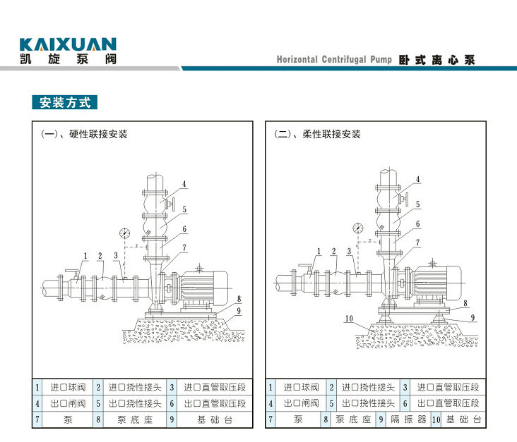 ISWR臥式熱水離心泵的安裝方式分為硬性聯(lián)接安裝和柔性聯(lián)接安裝如下圖: