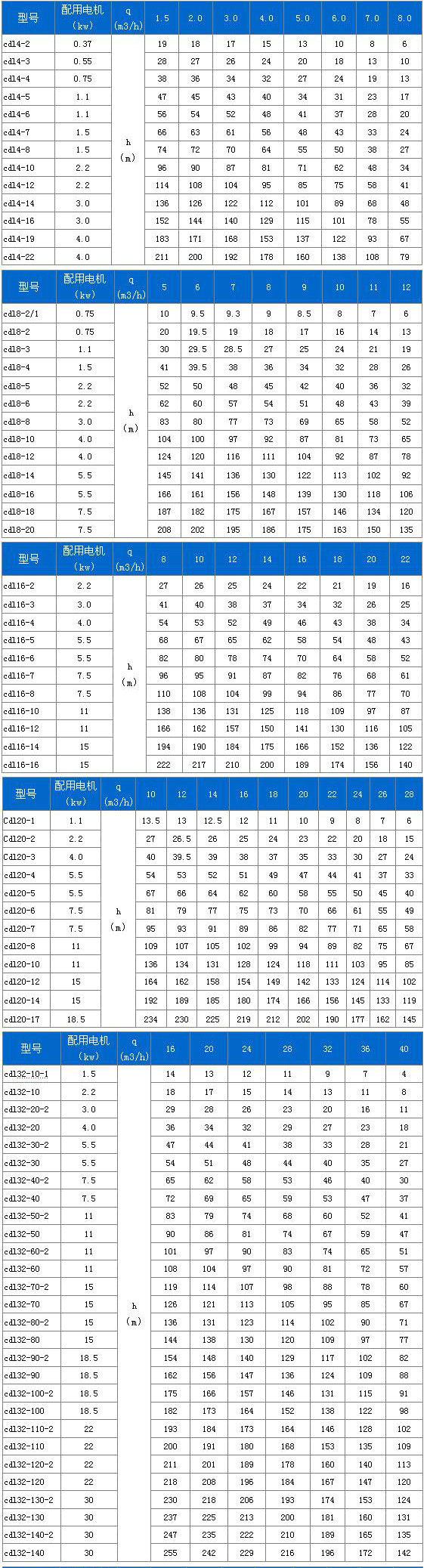 CDL立式不銹鋼多級離心泵性能參數(shù):