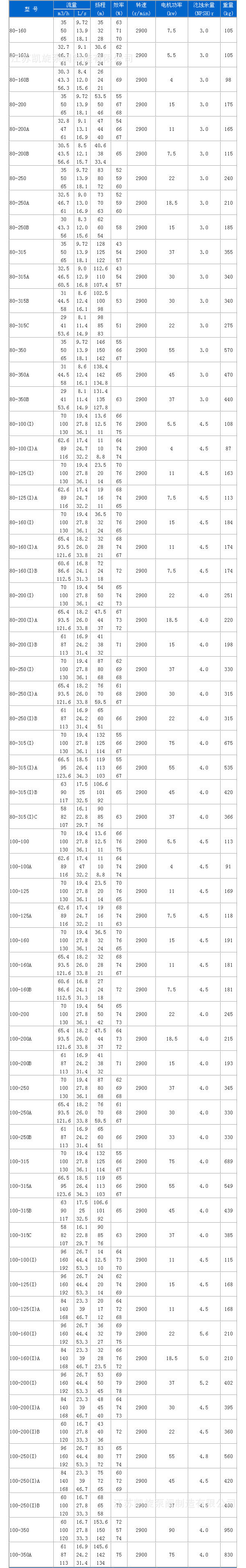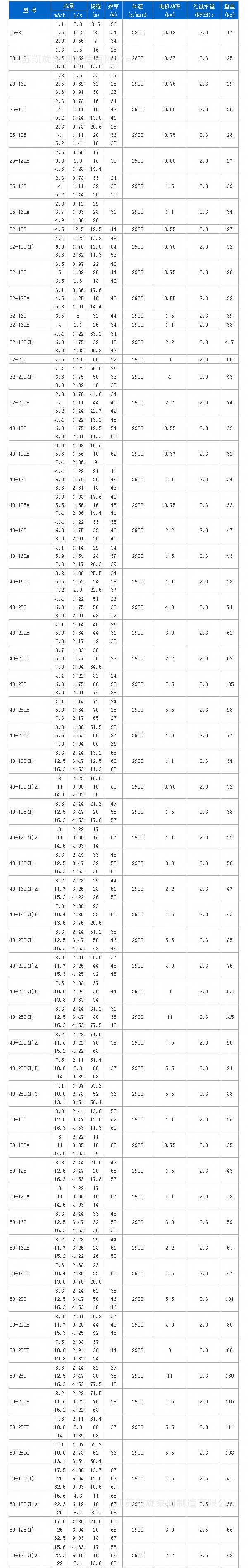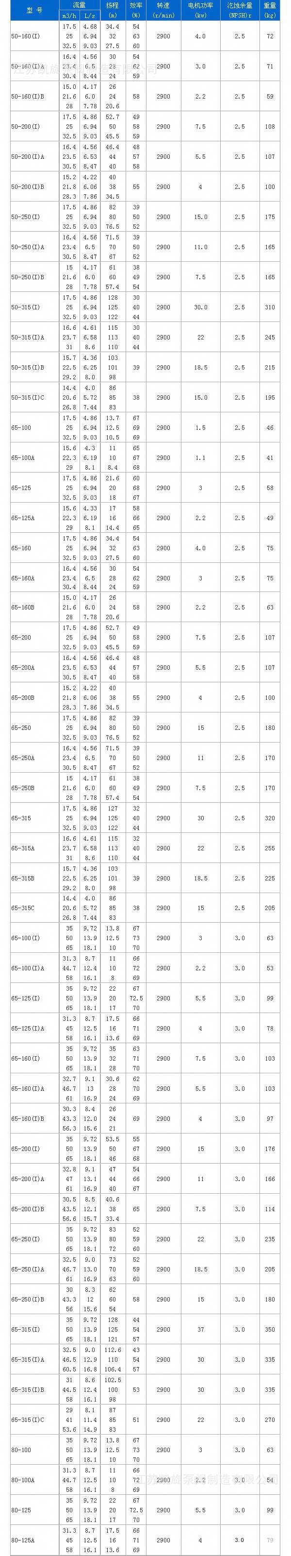 IHG型立式不銹鋼化工離心泵性能參數(shù):